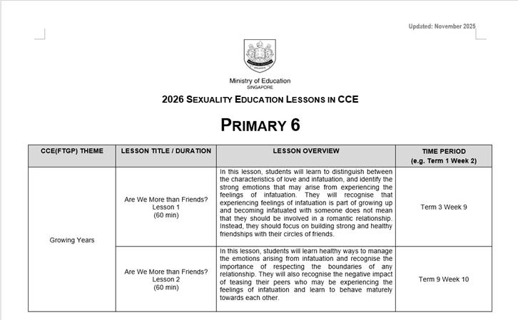 You may click here for more information on MOE Sexuality Education.